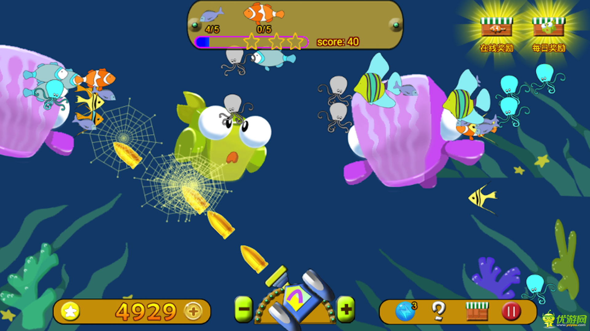 3.只需對準(zhǔn)屏幕上的魚群點擊開火,簡單爽快!