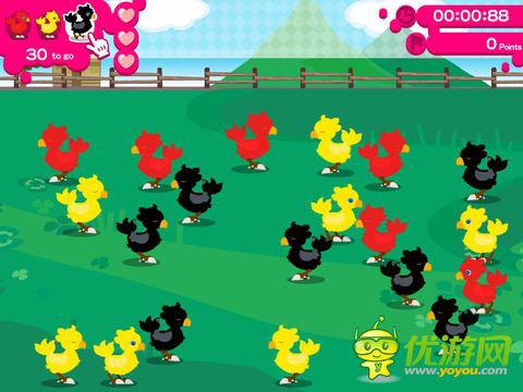 游戲獨(dú)特配上動(dòng)感的音樂(lè),玩法是根據(jù)屏幕左上方提示的顏色點(diǎn)擊相同色的陸行鳥(niǎo)。