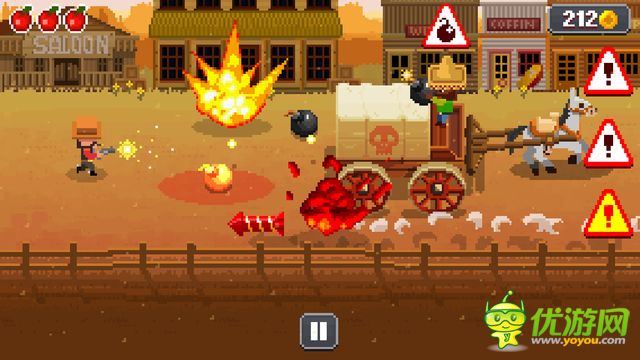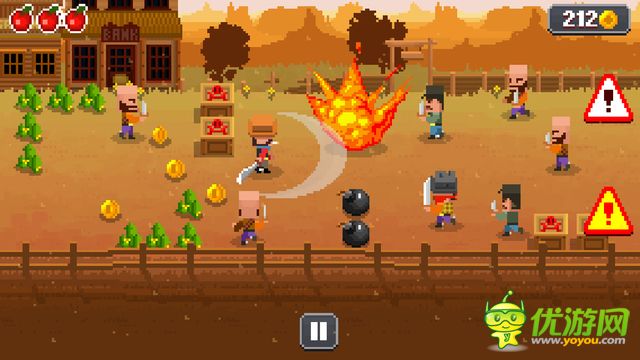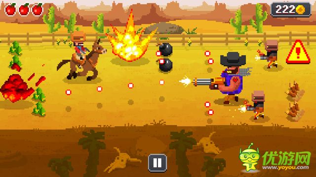 《野蠻西部-Wild Wild West》是一款像素風格的RPG射擊游戲,玩家扮演狂野的西部牛仔,一位正義感十足并且熱愛鋤強扶弱的帥氣牛仔,為了保衛(wèi)小鎮(zhèn)的安寧,你需要拿起手槍和砍刀對抗那些討厭的惡霸土匪。多種模式待你解鎖。