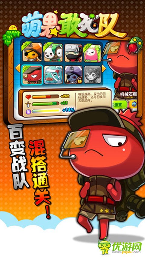 4.十三英雄:十三個(gè)性格迥異,各具能力的水果英雄,上百種策略組合。