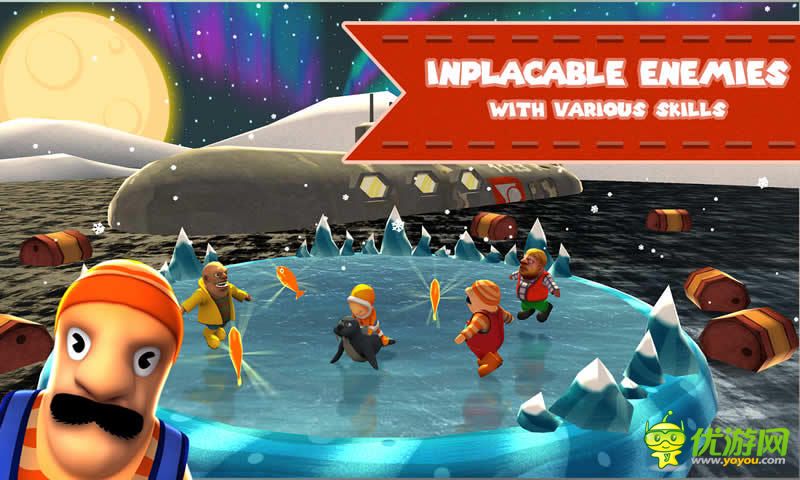 《極地探險(xiǎn)-Polar Adventure》是一款玩法比較有新意的休閑游戲。在這款游戲中你所扮演的是一個(gè)騎著海豹的小男孩,你要和海豹完美配合把前來(lái)捕捉小海豹的獵人們一個(gè)個(gè)撞入大海,同時(shí)收集掉落的魚(yú)兒以及各種輔助道具,比如磁鐵、愛(ài)心和小時(shí)鐘。你們要在一塊浮冰上進(jìn)行激烈的斗爭(zhēng),殘酷的環(huán)境外加邪惡的獵人們,努力挑戰(zhàn)吧少年!這款游戲通過(guò)觸摸屏幕來(lái)進(jìn)行控制,按住左邊屏幕可控制小男孩移動(dòng),點(diǎn)擊右邊屏幕則可使用沖刺技能。