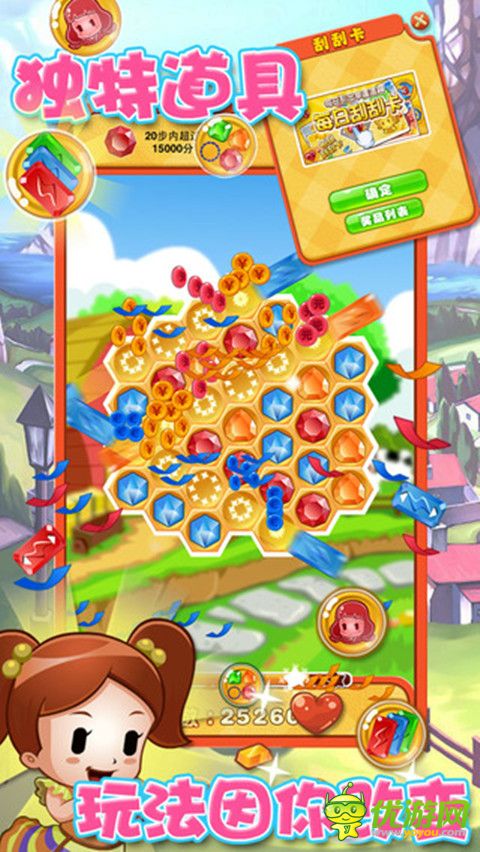 - 多種道具,連接的寶石個數(shù)越多,形成的道具就越強(qiáng)力,合理使用會讓你事半功倍。