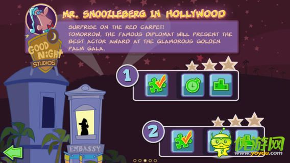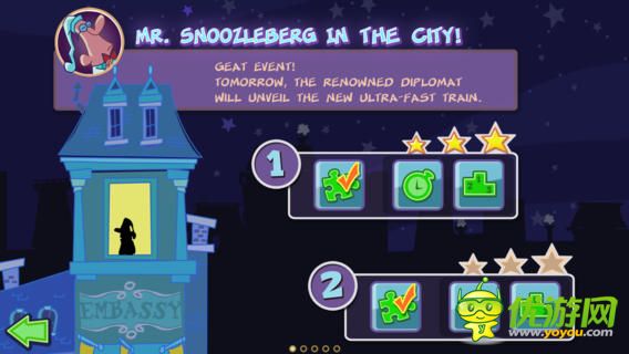 讓這個(gè)經(jīng)常夢(mèng)游的Mr.Snoozleberg安全的回到他的住處,這樣才能保證他參加第二天重要的活動(dòng)和儀式。 每一集游戲都在不同的環(huán)境中進(jìn)行,從熱鬧非凡的大都市到浩瀚無邊的海底深處,從機(jī)關(guān)重重的游樂場(chǎng)到危機(jī)四伏的動(dòng)物園,在他夢(mèng)游的路上,有很多障礙會(huì)驚醒他,傷害他,甚至置他于死地,所以你要充分利用你的手指,去幫他提前排除可能遇到的危險(xiǎn)。