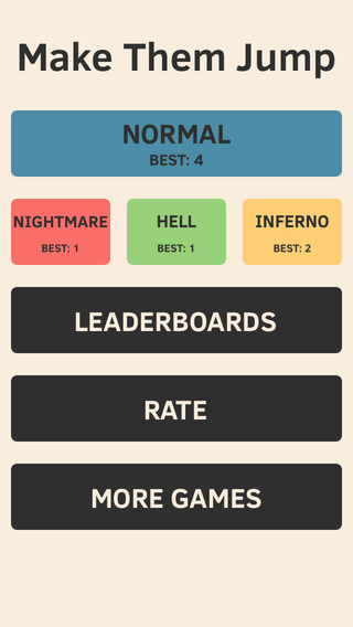 《難跳到死(Make Them Jump)》是一款讓小人跳躍的同時(shí)躲避道路上的障礙物??此坪?jiǎn)單的界面有著奇高的難度,虐心的程度和Flappy Bird有的一比。