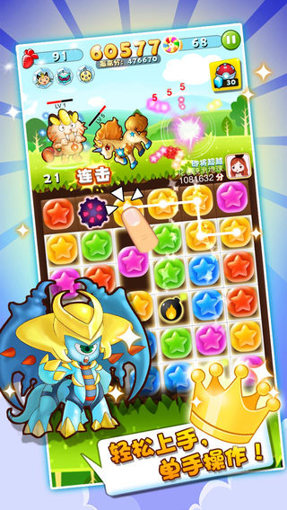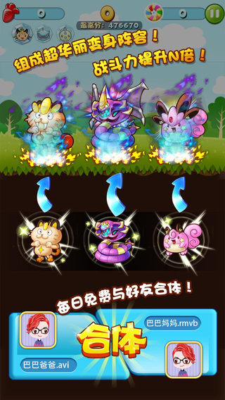 數(shù)十種特殊技能超級(jí)萌寵為你戰(zhàn)勝超強(qiáng)BOSS.彩色閃電、超級(jí)炸彈、彩虹刷子等數(shù)8種道具,每一種都有狂拽酷炫的效果,助你把怪物打成渣.